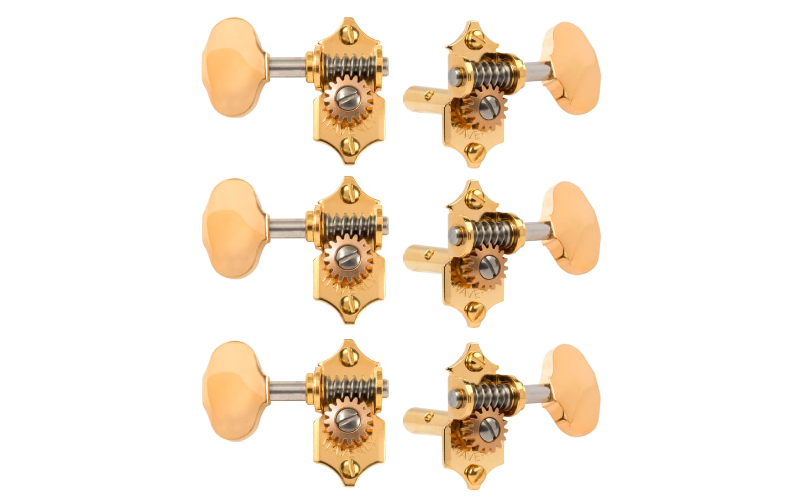 A classic 3‑left / 3‑right set that gives guitars a vintage look and smooth, stable tuning thanks to stainless‑steel worm gears and bronze post gears.