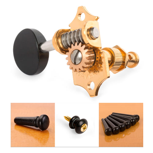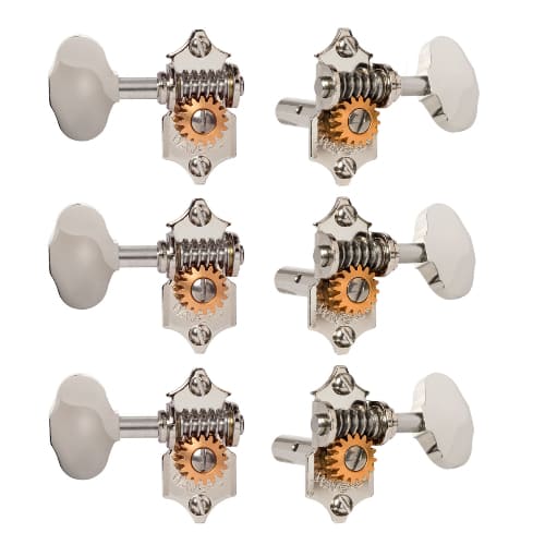 A classic 3‑left / 3‑right set that gives guitars a vintage look and smooth, stable tuning thanks to stainless‑steel worm gears and bronze post gears.
